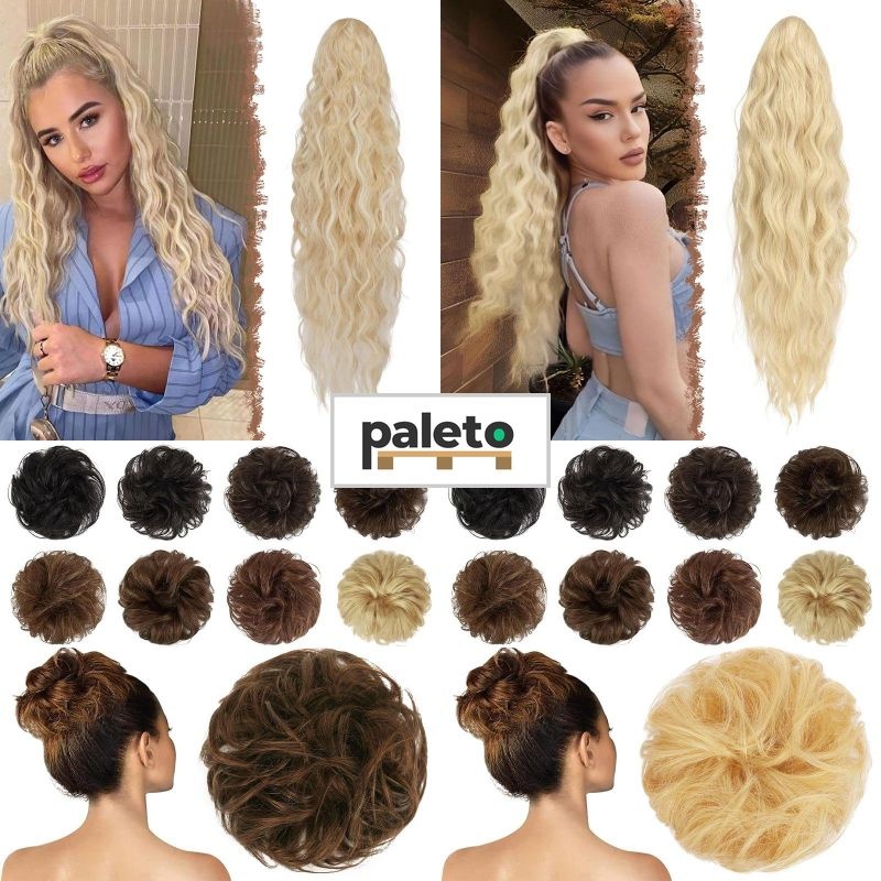 FESHFEN 100% pravý příčesek drdol kravata, vlnité kudrnaté vlasy drdol spona do vlasů prodlužování vlasů příčesek z pravých vlasů pro ženy dívky světlá blond